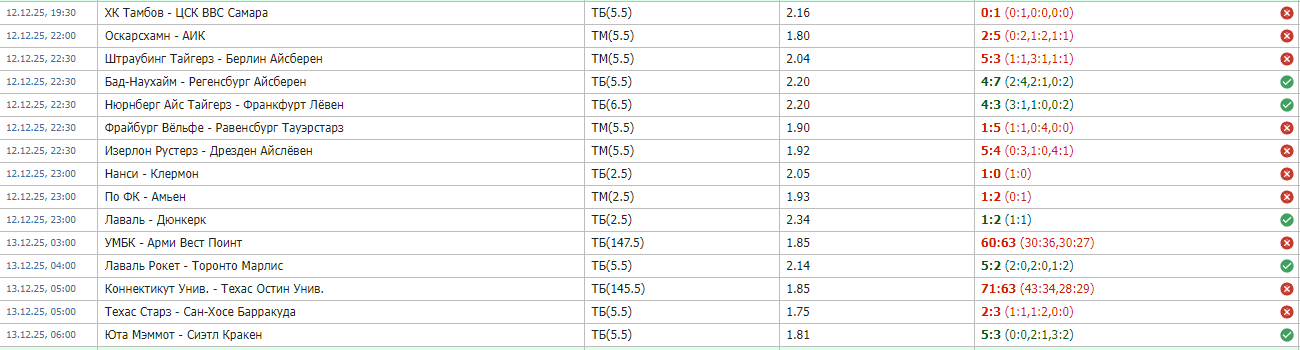 13.12.25, 17:00 Атлетико Мадрид - Валенсия ТМ(2.5) 2.40