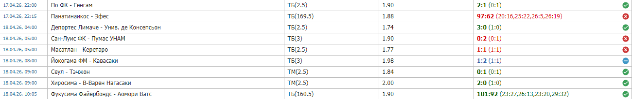 19.04.26, 08:05 Леванга Хоккайдо - Тиба Джетс ТМ(173.5) 1.74