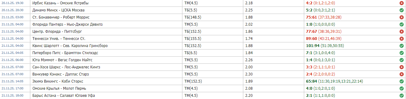 Прогнозы на спорт в ноябре 2025